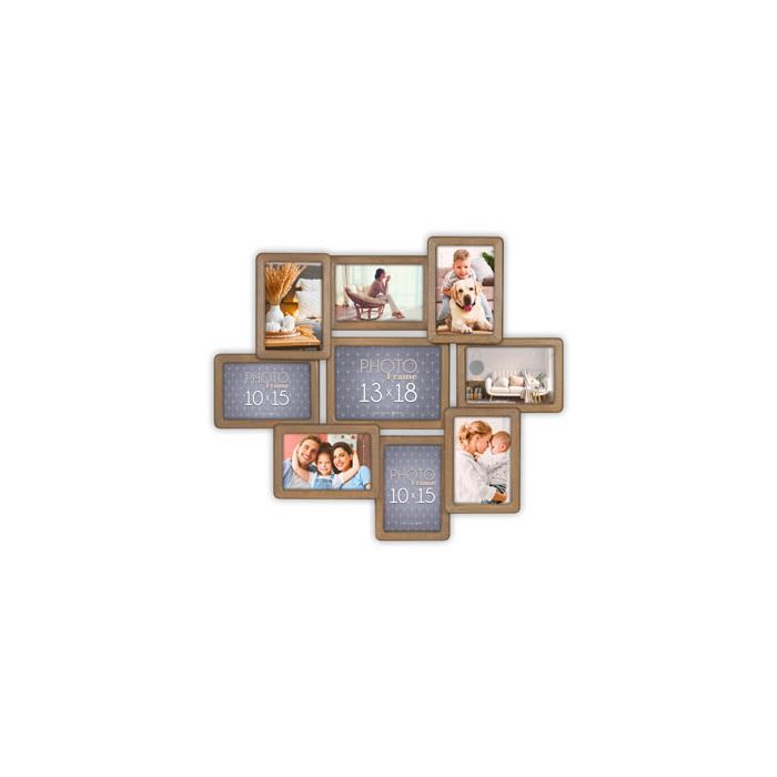 Setze auf stilvolle Eleganz mit dem Zep Bilderrahmen BC997 Digione. Perfekt, um eine unvergessliche Fotocollage zu gestalten – Platz für insgesamt 9 Fotos. Der klassische Ajaccio-Rahmen aus Holz in warmem Braun verleiht jedem Raum, ob Zuhause oder Büro, einen zeitlosen Look. Mit diesem Mehrfachrahmen kannst du deine Fotos flexibel sowohl horizontal als auch vertikal präsentieren und hältst so jeden Moment einzigartig fest. Die großzügigen Gesamtmaße von 56 x 49 cm machen den Rahmen zum beeindruckenden Blickfang an jeder Wand.