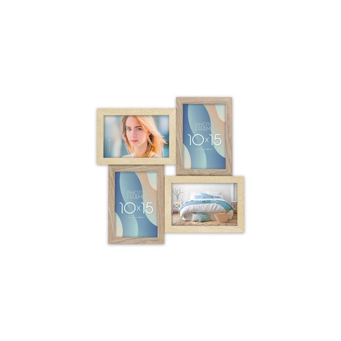 Lass dein Zuhause mit dem Zep Fotolist DT987 Oberg 4Q erstrahlen. Diese einzigartige Fotocollage ist perfekt für 4 Fotos im Format 10x15 cm – so setzt du deine schönsten Erinnerungen im Wohnzimmer oder Büro gekonnt in Szene. Das clevere Design kombiniert horizontale und vertikale, sich überlappende Rahmen auf verschiedenen Ebenen – mit einer tollen Mischung aus Braun- und Naturholztönen. Bei einer Gesamtgröße von 32 x 32 cm ist dieser Bilderrahmen eine stilvolle Bereicherung für jede Wand.
