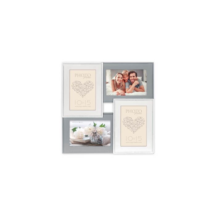 Der Zep Bilderrahmen HH154 Rouen 4Q 4x 10x15 cm bietet dir eine elegante Möglichkeit, deine Erinnerungen stilvoll zu präsentieren. Mit Platz für 4 Fotos im Format 10x15 cm bringt dieser Rahmen eine schicke Note in jeden Raum. Das raffinierte Design aus weißem und grauem Holz mit überlappenden Lagen sorgt für eine dynamische Wandpräsentation. Perfekt für Zuhause oder Büro, die Gesamtgröße inklusive Rahmen beträgt 31,5x31,5 cm.
