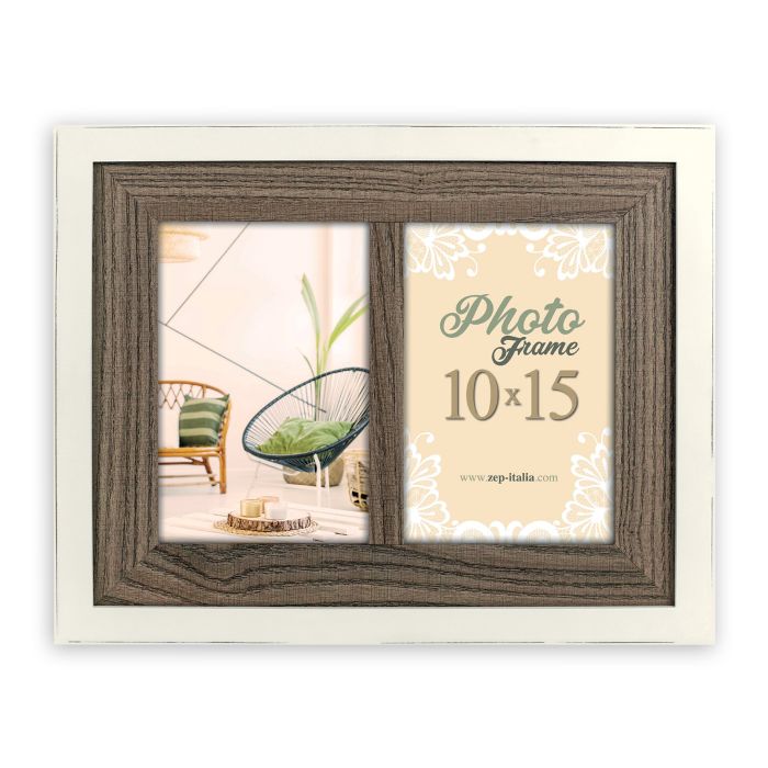 Der NQ22B von Zep Italia zieht mit seinem stylischen Braun-Weiß-Design und Holz-Look alle Blicke auf sich. Passend für 2 Fotos im Format 10x15 cm, bietet dieser Bilderrahmen eine edle Verarbeitung, die deine wertvollen Erinnerungen perfekt zur Geltung bringt.