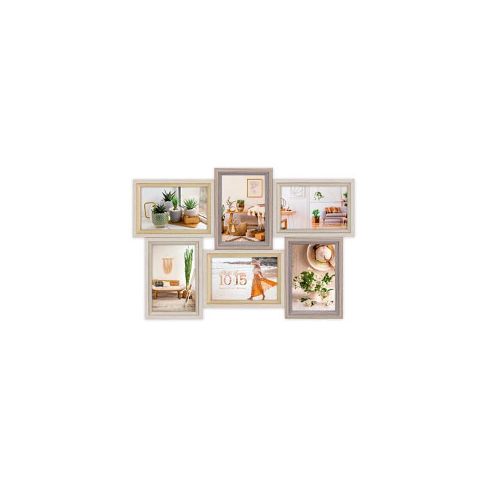 Entdecke den vielseitigen Charme des Zep Bilderrahmens VZ662 Zara 6Q 6x10x15 cm – perfekt, um deine 6 Lieblingsfotos stilvoll in Szene zu setzen. Diese elegante Fotocollage bietet Platz für 6 Fotos je 10x15 cm und ist eine tolle Bereicherung für dein Zuhause oder Büro. Der Holzrahmen in der einzigartigen Kombination aus Weiß, Braun und Grau sowie mit dem zweifarbigen quadratischen Profil verleiht jeder Wand, an der du ihn anbringst, einen schicken Touch. Die Maße dieser Collage betragen 31,5 x 46 cm (LxB) – ein echter Hingucker in jedem Raum.