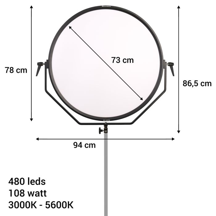 Der SO-108TDX von Falcon Eyes bietet eine moderne LED-Lösung mit außergewöhnlich weichem Licht. Statt einzelner LEDs strahlt diese Lampe eine gleichmäßige Lichtwolke aus. Mit 108 Watt Leistung wirft der SO-108TDX Licht in einem Abstrahlwinkel von 65 Grad, während der hohe CRI-Wert von 95 eine natürliche Farbwiedergabe garantiert. Das integrierte Touchscreen erlaubt dir, die Helligkeit stufenlos zu regeln und die Farbtemperatur von 3000K bis 5600K anzupassen. Nutze das mitgelieferte Netzteil oder wähle optional einen V-Mount-Akku für noch mehr Flexibilität.