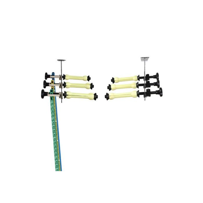 Die Halter sind 32 cm hoch und maximal 21 cm tief, mit einem maximalen Durchmesser von 7 cm. Die doppelt ausgeführten Ketten sind 1,70 Meter lang und die Rollenhalter ragen 12 cm über die Rolle hinaus. Das System ist perfekt für maximal 2 Vinylrollen. Suchst du eine Lösung für Rollen mit 3,56 Meter Länge? Dann melde dich schnell bei uns für eine persönliche Beratung!