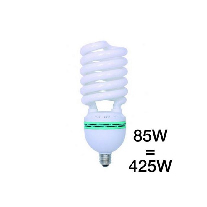 Die Leistung dieser Spiraallampe lässt sich mit dem Faktor 5 multiplizieren, um sie mit der Ausbeute einer normalen Glühlampe zu vergleichen. Die 85W dieser Lampe entsprechen also der Leistung von 425W.