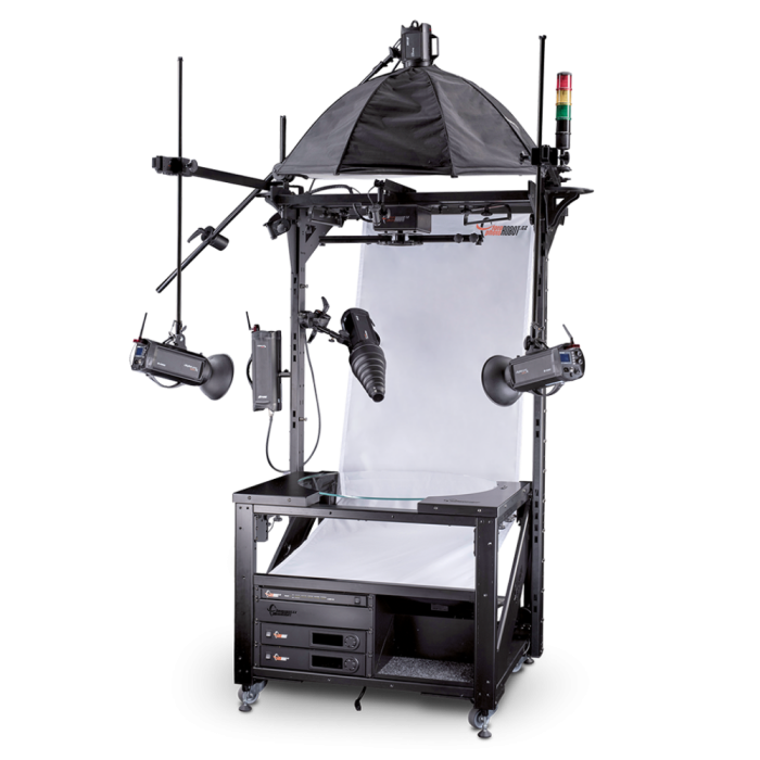 Ideal für alle, die schnelle, hochwertige Packshots und 360°-Spins ohne technischen Aufwand aufnehmen wollen – egal wie vielfältig Größe und Gewicht der Produkte sind (max. Ø 130 cm, 100x100x100 cm und 40 kg). Mit Canon EOS-Kameras (Kaufberatung vorhanden) und diversen Erweiterungen, wie dem fortschrittlichen Robot-Stativ und Blitzanlagen, bietet der Centerless Table maximale Vielseitigkeit.