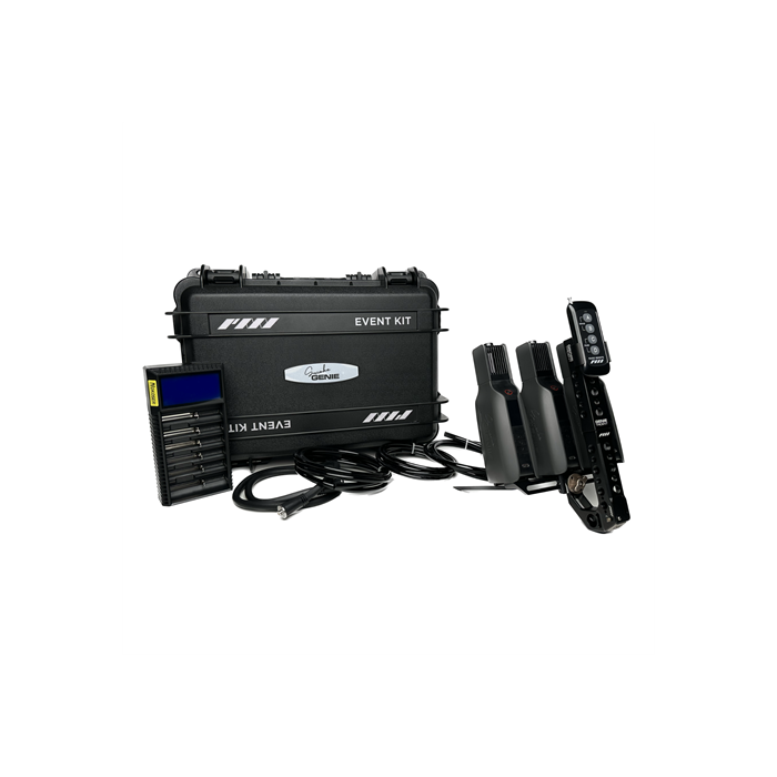 Suchst du nach noch mehr Rauch in einer Hand? Das Event Kit von SmokeGENIE ist genau das, was du brauchst. Der Koffer dieser Set hat 2 Ebenen. Die obere Ebene enthält alle wichtigen Artikel, um sofort loszulegen. Inklusive 3 Rauchmaschinen, 3 Lüftern, 1 Magic Remote und extra Platz für Ersatzbatterien. Die untere Ebene ist voll mit Wartungsmaterial. Kurz gesagt: alles an einem Ort für ein komplettes Arbeits-Setup. In der oberen Ebene findest du auch Zubehör wie Röhrchen, Schläuche und Adapter. Das Set enthält das neue SmokeGENIE Verlängerungskabel und den kraftvollen GENIE Trident. Dieser Halter ermöglicht dir, 3 Rauchmaschinen gleichzeitig einzusetzen, um ein noch intensiveres Raucherlebnis zu schaffen, das länger anhält. Setz die Magic Remote in den GENIE Trident und steuere 3 Rauchmaschinen gleichzeitig mit nur einem Knopfdruck. Die Magic Remote kannst du auch für die Lüftersteuerung nutzen.