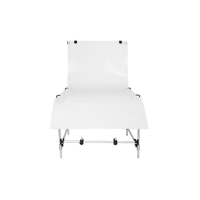 Zum ST-60 Fototisch erhältst du folgendes Zubehör: die Tischkonstruktion selbst, 1 PVC-Platte als stabile Unterlage, 8 Montageklemmen für die Platte und 2 Spigot-Klemmen für die Beleuchtung. Mach dich bereit, professionelle, schattenfreie Produktfotos zu schießen, die Eindruck machen.