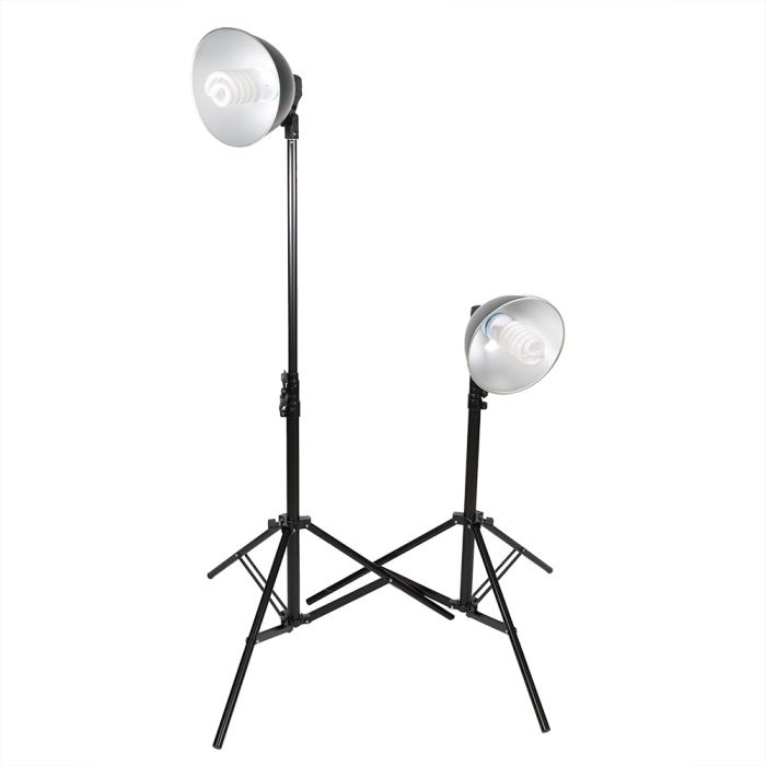 Im Lieferumfang dieses großartigen Lichtsets ist alles enthalten, was du für den Start brauchst: insgesamt zwei Lampenfassungen mit Kabel, zwei 85W-Spirallampen, zwei Reflektoren mit 26 cm Durchmesser, zwei Lampenstative, höhenverstellbar bis 210 cm, und eine praktische Transporttasche. Alles kommt in einer schicken Farbbox, die das Set komplett macht.