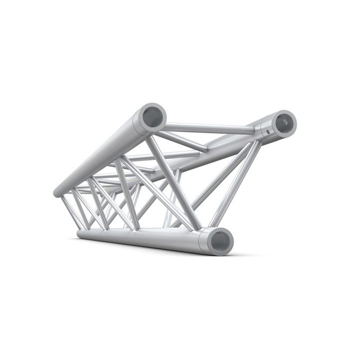Die dreieckige Fachwerkstruktur besitzt ein Hauptrohr mit 32 mm Durchmesser und ein Verstärkungsrohr mit 10 mm Durchmesser. Trotz eines Gewichts von nur 9,2 kg liefert dieser Truss beeindruckende Performance. Optimal geeignet für kleine bis mittlere Veranstaltungen, und dank der silbernen Farbe passt er perfekt zu jedem Stil – genau das Richtige für deine nächste Show oder dein Event.
