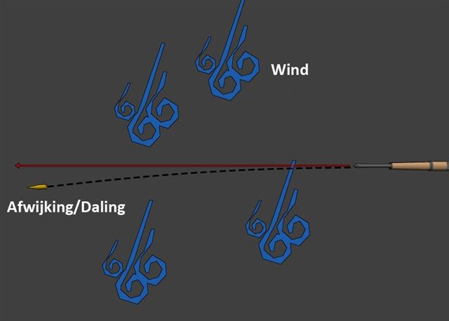 - Schieten onder een bepaalde hoek heeft ook invloed.