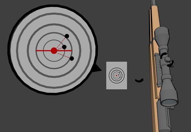 *Zorg ervoor dat je onthoud hoeveel horizontale en verticale kliks je hebt aangebracht om de richtkijker af te stellen. Dan kun je altijd terug naar het “nulpunt”
