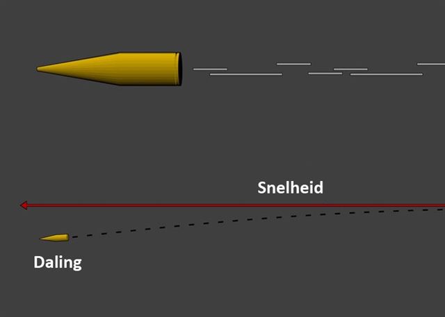 - De kogelsnelheid (deze heeft invloed op de daling)